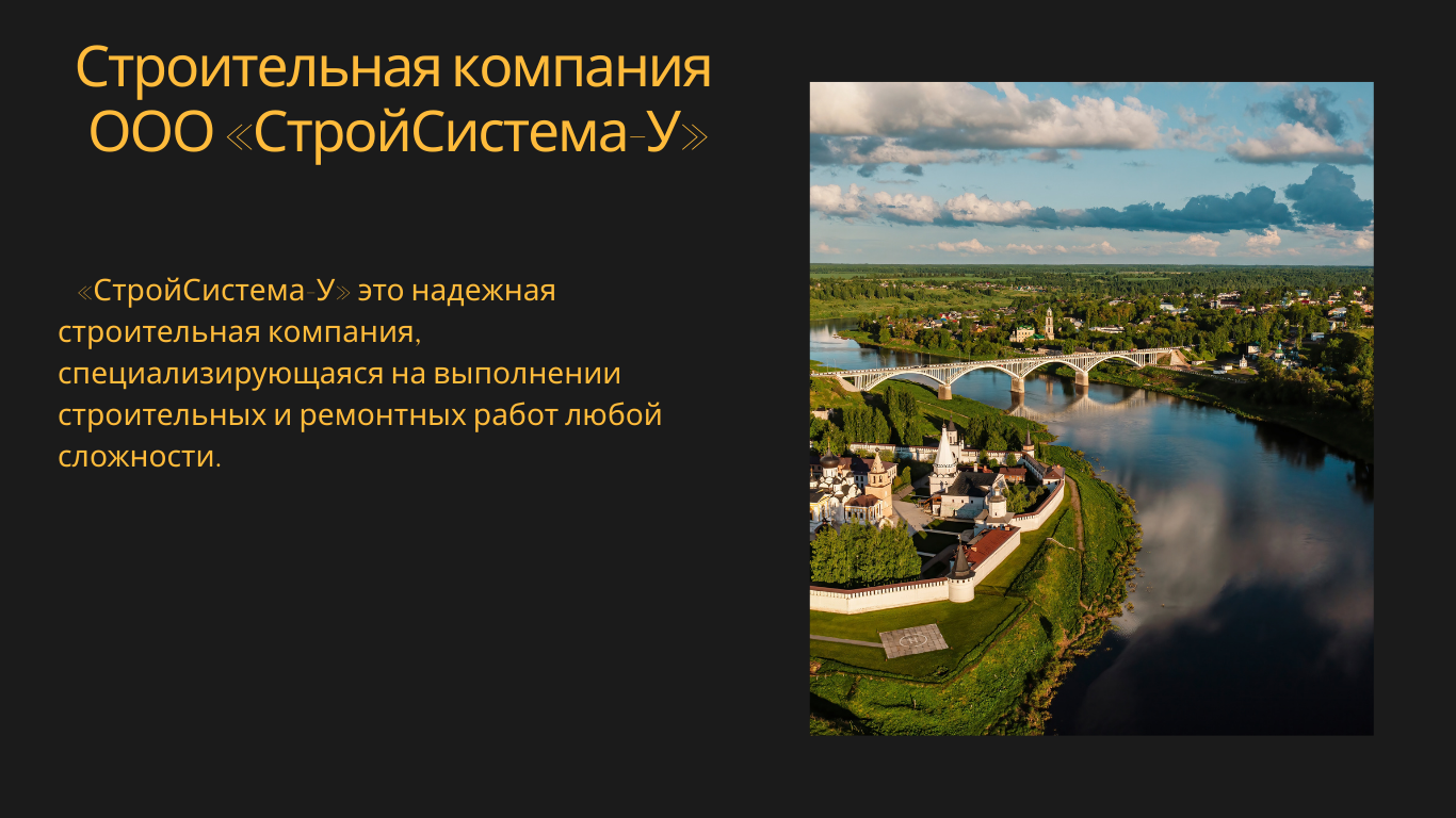 Компания осуществляет строительство жилых и нежилых зданий, а также выполняет капитальный и текущий ремонт объектов различного назначения.